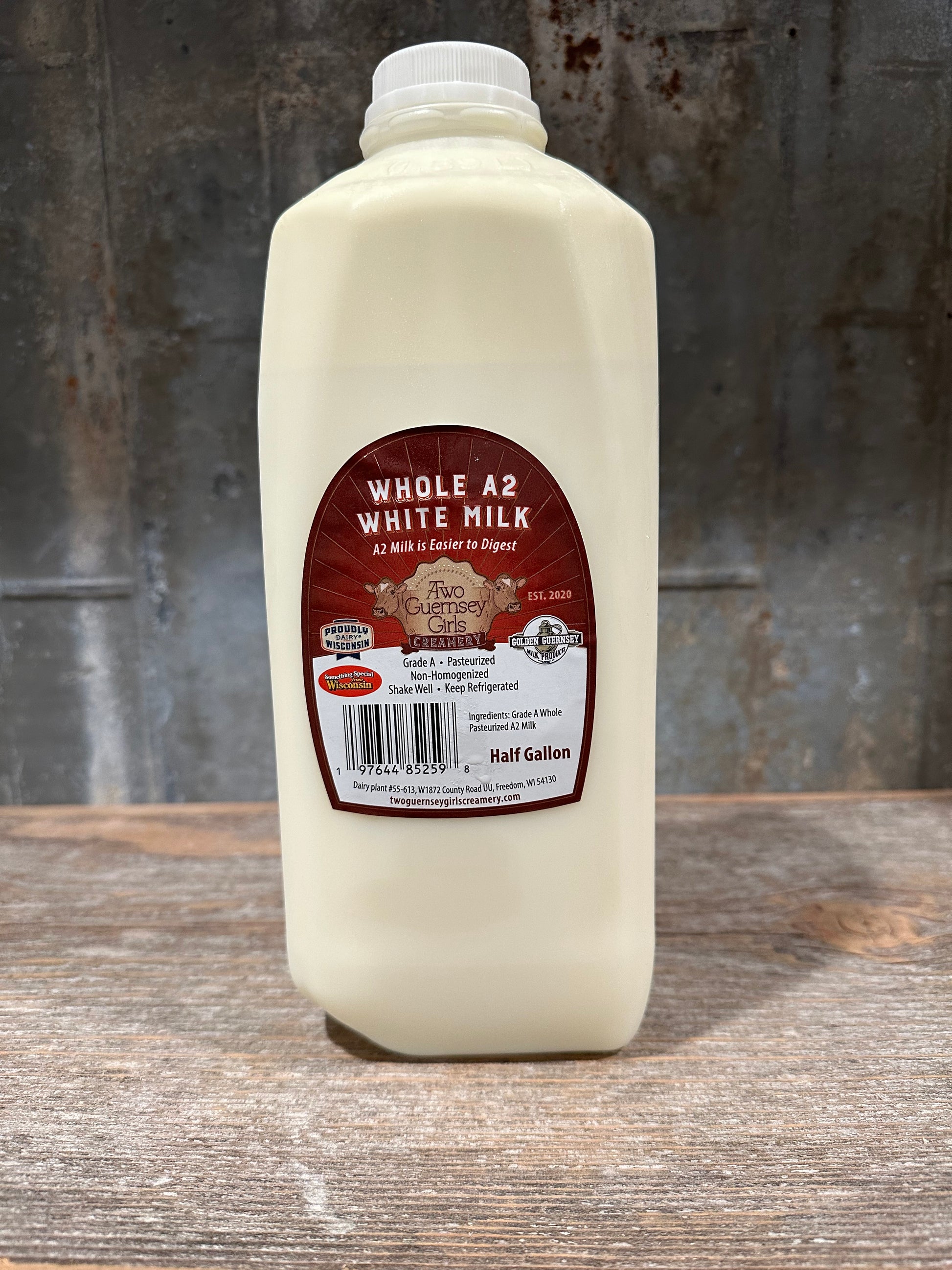 Award Winning Grade A Whole A2 Chocolate Milk from Two Guernsey Girls Creamery in Freedom, Wisconsin. Our milk is bottled on-farm, fresh from the cow. Our small herd of purebred milking Guernsey's provide the raw ingredients for our delicious milk and other dairy products!